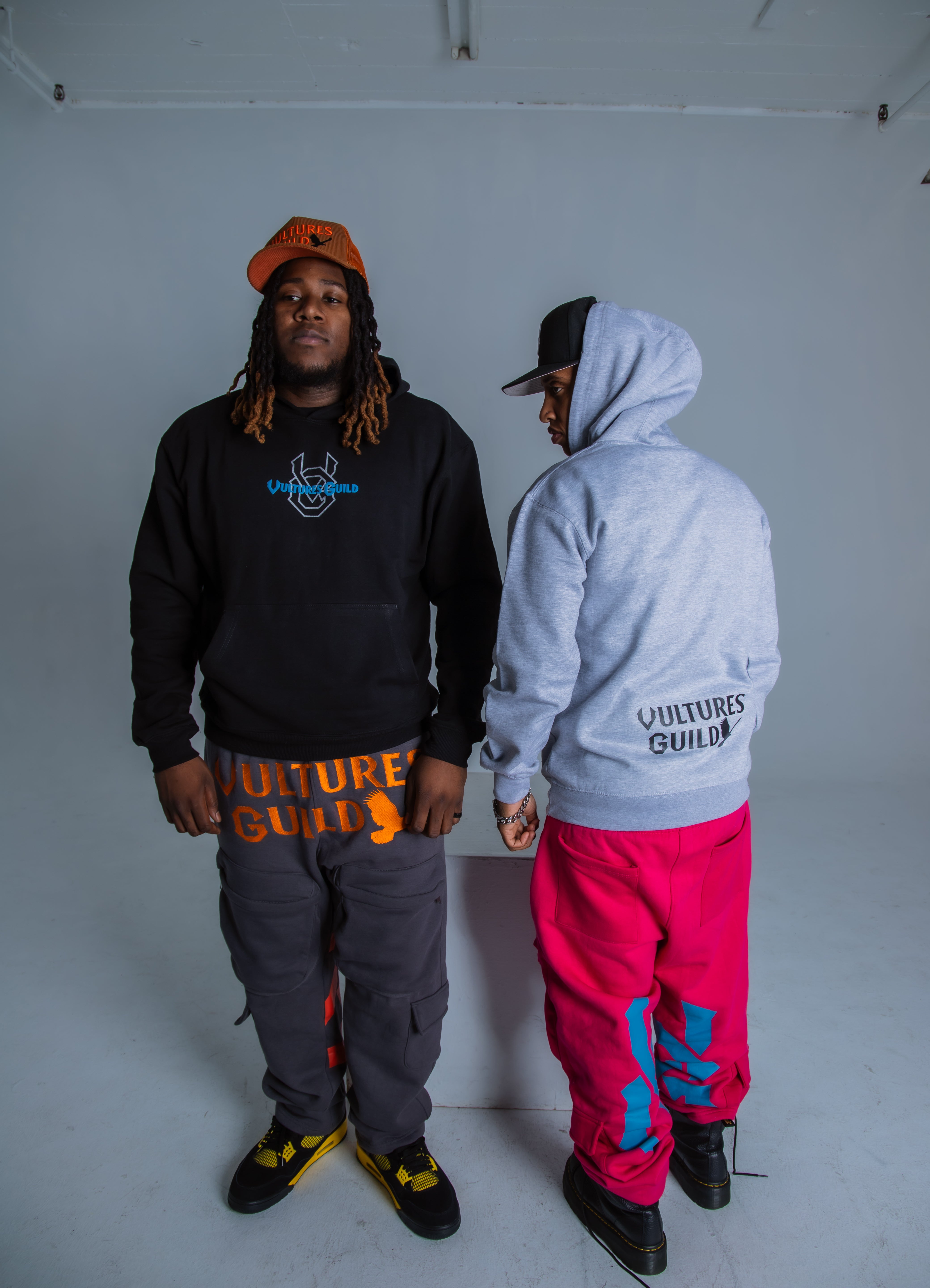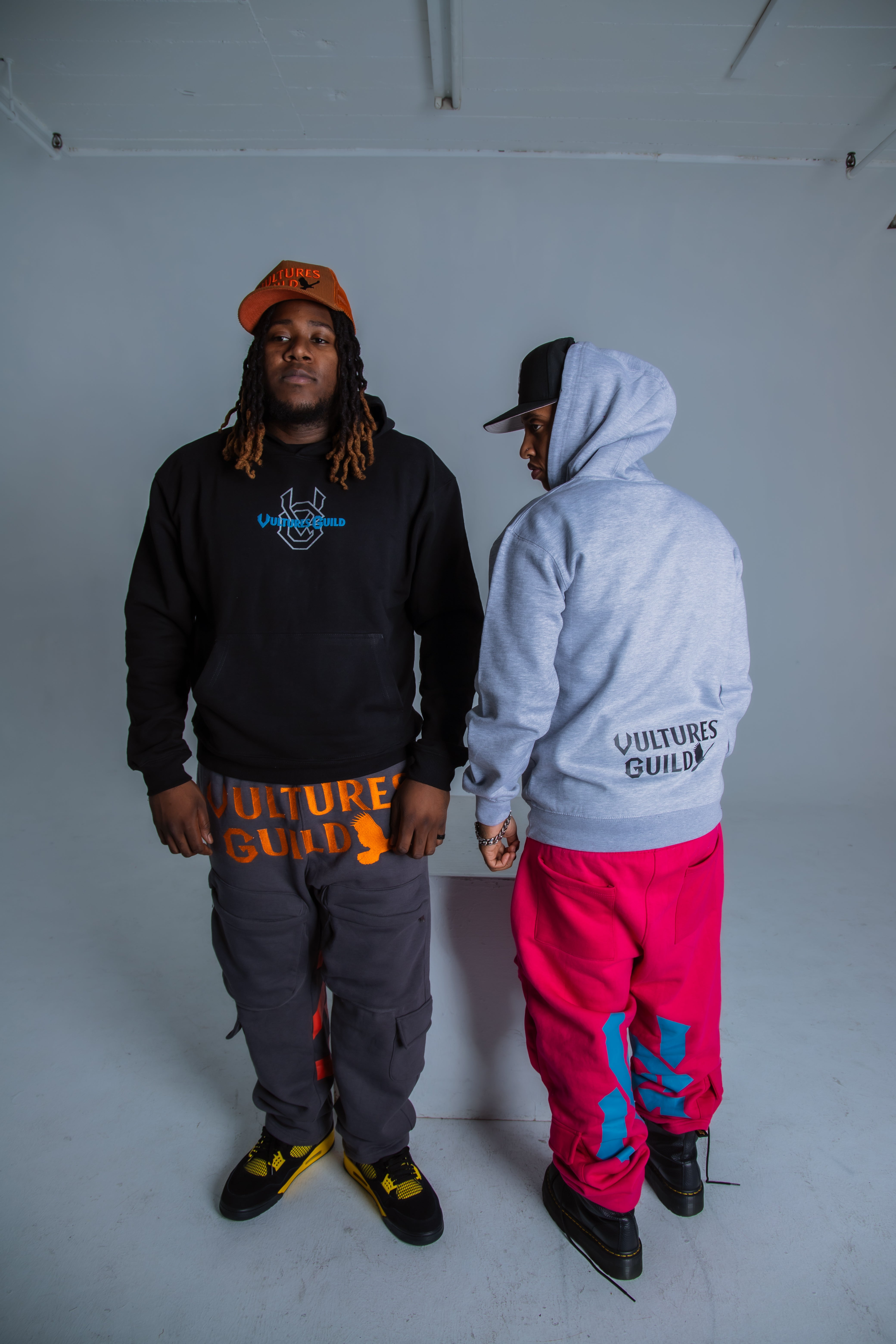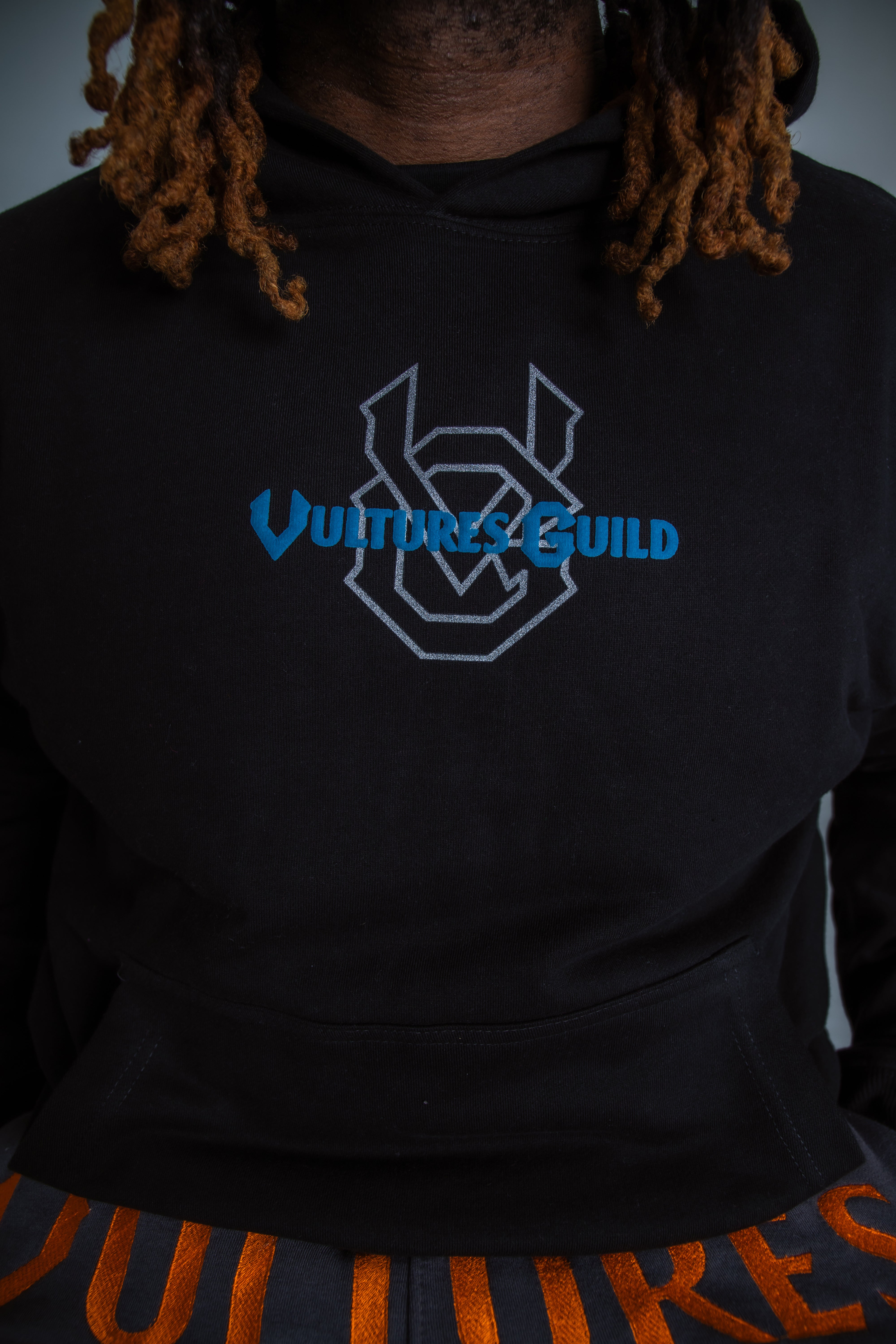 Signature Branding: Embroidered/printed Vultures Guild logo on the chest, repping resilience and hustle.
